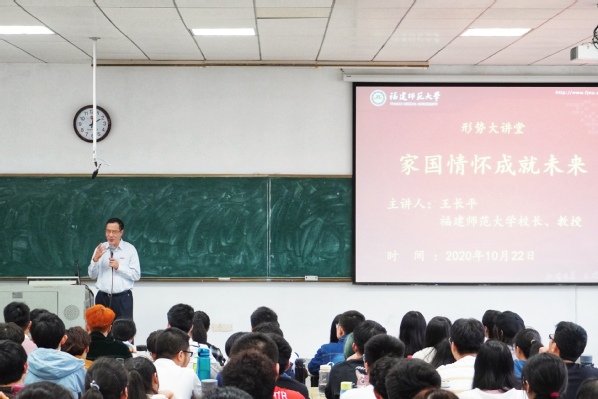 2020年10月22日,校长王长平以《家国情怀 成就未来》为题,分别为法学院2020级本科生和光电与信息工程学院2019级本科生上思政课。他结合自身求学与工作经历,从时代的进步、教育的发展、国家的复兴等3个方面为同学们生动阐述了家国发展与青年成长成才的密切联系。他勉励青年学生要把握历史机遇,珍惜教育机会,用功学习,不断开拓眼界、增长阅历;要保持激扬青春、矢志奋斗的精神面貌,紧跟时代发展,肩负时代重任,不断激荡新气象、成就新作为,为实现中华民族伟大复兴的中国梦凝聚磅礴力量。