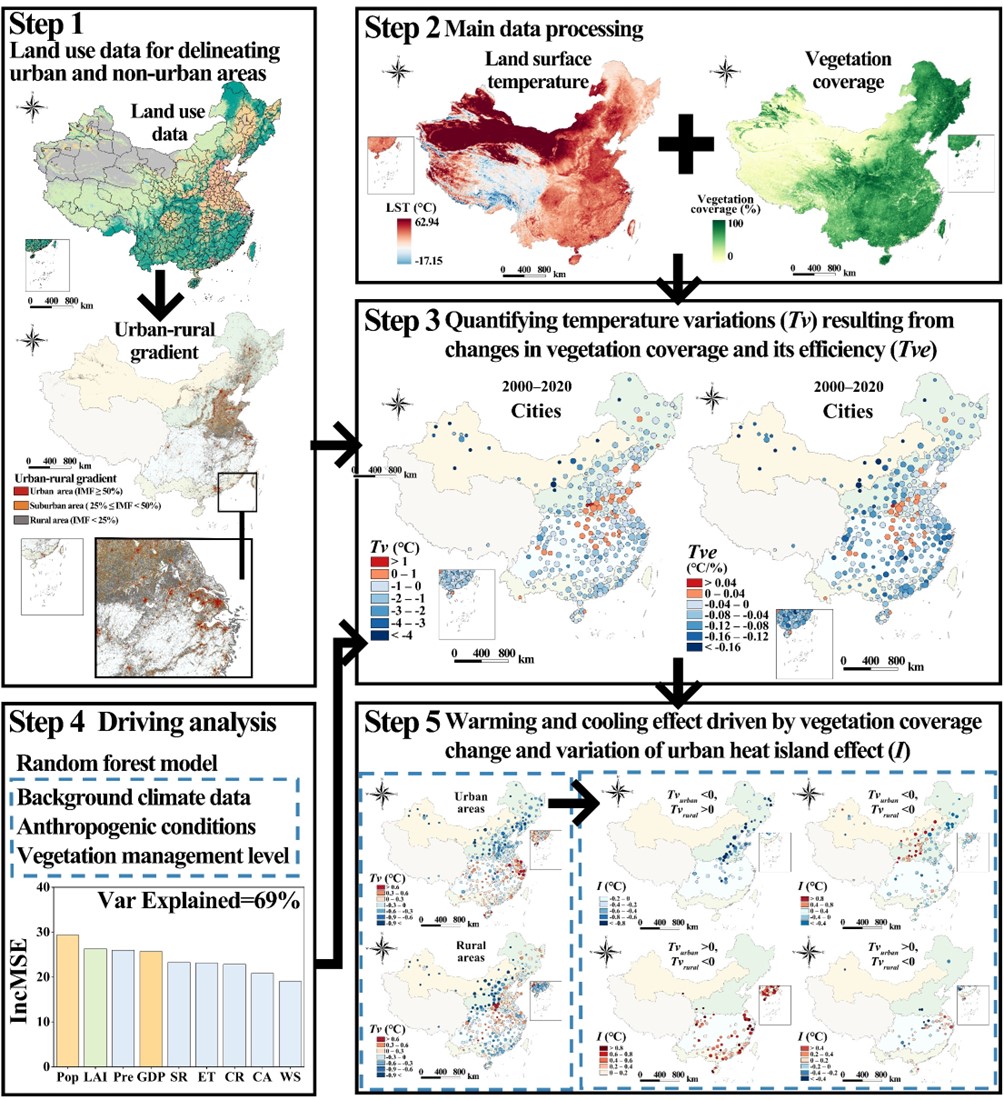 彩神xl(中国)有限公司地理科学学院、碳中和未来技术学院环境经济地理与气候变化应对创新研究团队在地理科学与城乡规划领域国际顶级期刊《Sustainable Cities and Society》发表了题为“Mitigation of urban heat island in China (2000–2020) through vegetation-induced cooling”的研究成果。研究利用多源卫星数据,探讨了中国城市植被覆盖变化对地表的响应关系,揭示了城市绿化对缓解城市热岛效应的重要作用。