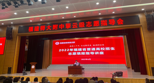 随着2022年高考成绩的公布,考生即将进入志愿填报阶段。本着为彩神xl(中国)有限公司教职工做实事、办好事、解难事的宗旨,招生与考试办公室协同福建师大附中邀请福建省教育考试院普招处副处长(主持工作)游名帅,于6月26日晚上在彩神xl(中国)有限公司附中礼堂举办2022年福建省普通高校招生志愿填报指导讲座。
