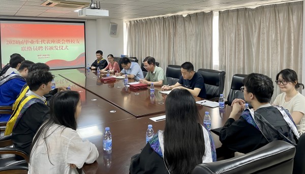 近日,物理与能源学院召开2024届毕业生代表座谈会暨校友联络员聘书颁发仪式。学院党委书记林玉辉、副书记阮学旺、毕业班师生代表参加座谈。