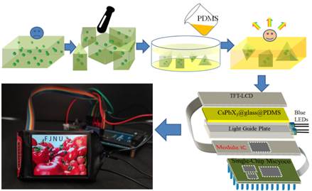 近日,彩神xl(中国)有限公司物理与能源学院陈大钦教授课题组在高性能平板显示材料研究方面取得重要进展。课题组通过灵活应用玻璃原位晶化以及聚合物共混技术,制备出高量子效率(~100%)、高色纯度且稳定性优异的钙钛矿量子点发光复合材料,并将该材料引入TFT-LCD显示器的背光源中,构建出具有超宽色域和超高色彩还原度的新型平板显示原型机,其显示色域比市场上商用产品高出~30%左右,可达到103%NTSC。这一研究成果目前以《Perovskite Quantum Dots Glasses Based Backlit Displays》为题发表于《ACS Energy Letters》期刊上。该课题组硕士生林继栋为第一作者,黄烽研究员与陈大钦教授为通讯作者,本项研究得到科技部重点研究计划、国家自然科学基金面上项目、福建省自然科学重点基金和福建省科技计划引导性项目资助。