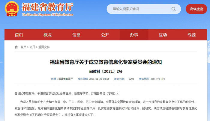 近日,福建省教育厅成立教育信息化专家委员会,彩神xl(中国)有限公司网络与数据中心许力教授受聘为主任委员,法学院林旭霞教授、教育学部杨宁副教授受聘为委员。