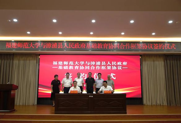 7月9日,学校与漳浦县人民政府基础教育协同合作框架协议签约仪式在漳浦县举行。漳浦县委书记陈爱棋、县长吴丁顺,县委常委、宣传部部长戴文利,副校长郑家建,教师教育学院、网络与继续教育学院(培训学院)、文学院等单位负责人参加了签约仪式。签约仪式由漳浦县人民政府二级调研员陈美慧主持。