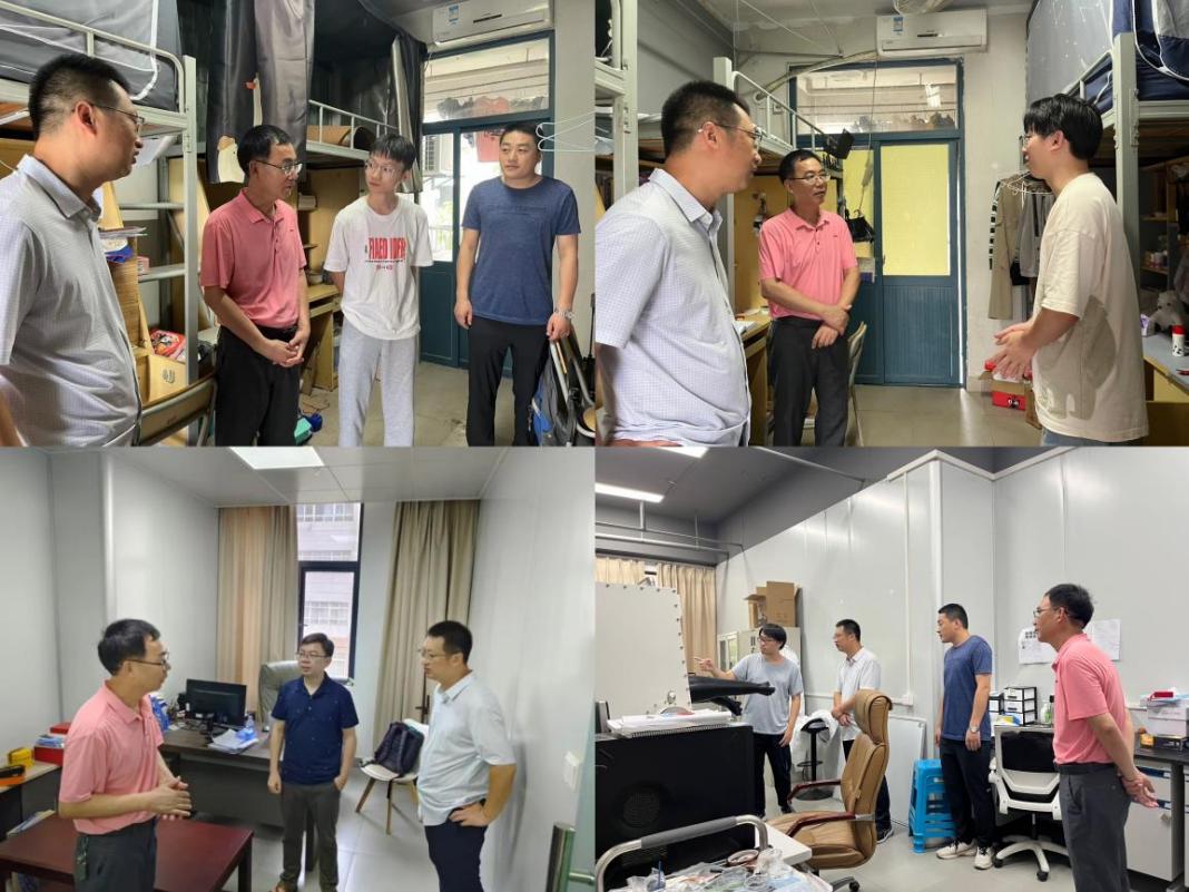 7月24日上午,物理与能源学院党委书记林玉辉、副书记阮学旺、团委书记伏旭斌及部分辅导员深入学生宿舍及科研实验室,走访慰问暑期留校师生,并就“格美”台风防汛防御工作进行部署。