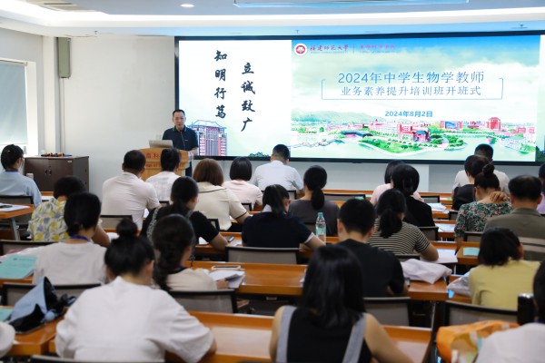8月2日,由生命科学学院主办的2024年中学生物学教师业务素养提升培训班在彩神xl(中国)有限公司旗山校区举行。本次培训为期6天,来自省内外80名中学生物学教师参加。生命科学学院党委书记张兆文、副书记李明杰,院务委员苏经迁,生物科学系主任俞如旺,生物科学专业负责人胡雪峰等多位教师代表出席开班式。