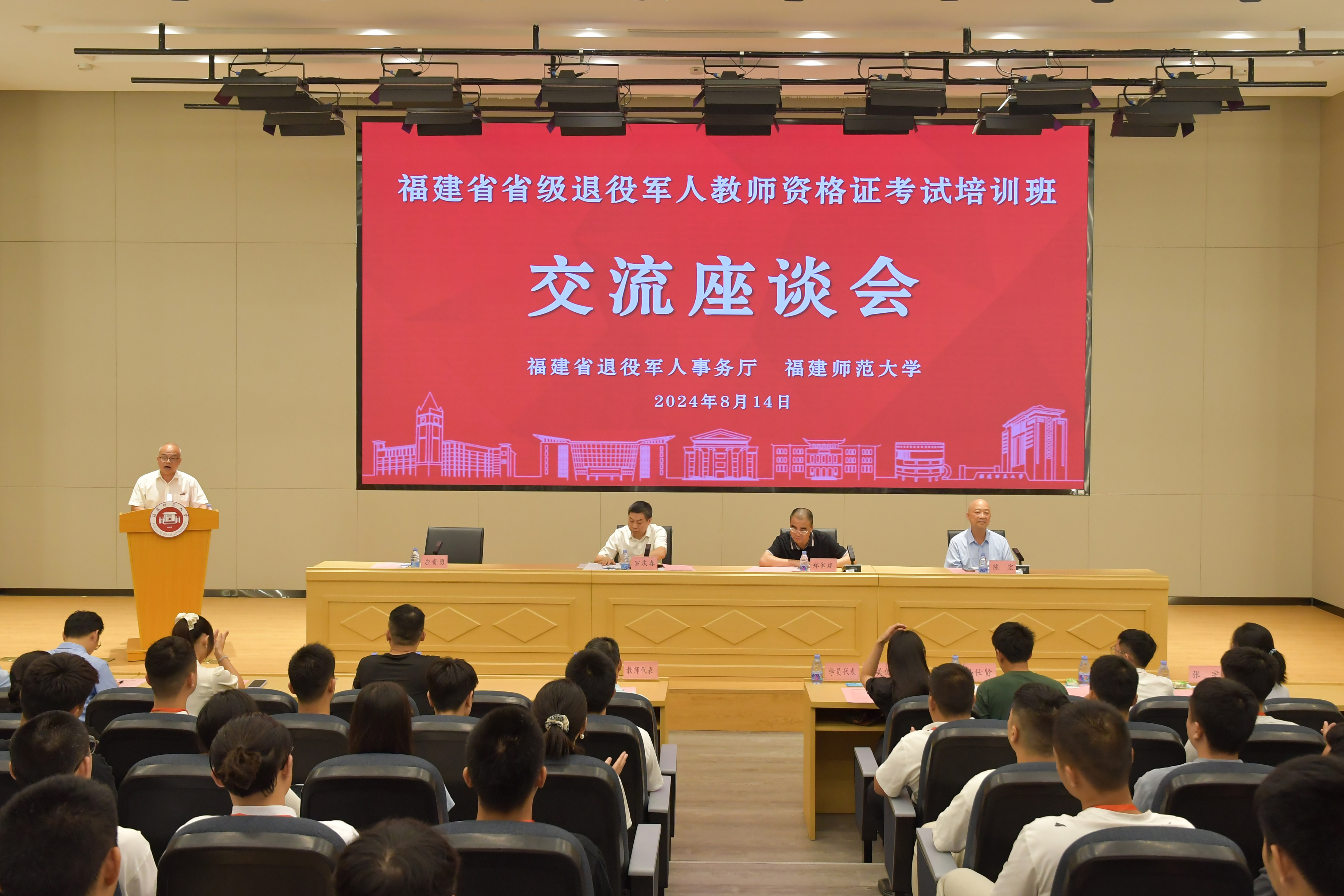 会议于8月14日在彩神xl(中国)有限公司仓山校区举行。省退役军人事务厅党组书记、厅长罗庆春,彩神xl(中国)有限公司副校长郑家建,省退役军人事务厅安置就业处陈宏处长及有关工作负责人,网络与继续教育学院(培训学院)负责人,教师、学员代表,第二期省级退役军人教师资格证考试培训班全体学员等共100余人参加了座谈会。