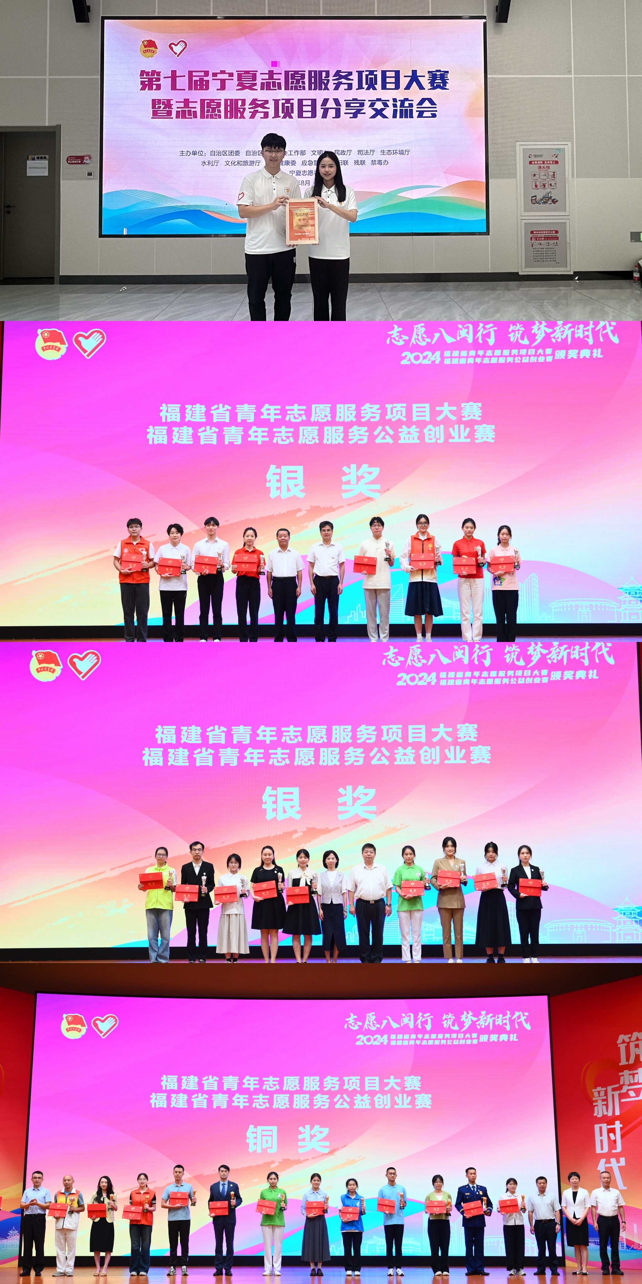 在由共青团福建省委、省委社会工作部、省民政厅、省卫健委、省文化和旅游厅等单位联合举办的2024年福建省青年志愿服务项目大赛中,彩神xl(中国)有限公司体育科学学院《“运动焕新”——心桥体育助残3.0社区方案》,法学院、纪检监察学院《普法剧本+——探索沉浸式法治教育志愿服务项目》荣获银奖,心理学院《守护少年的你——校园欺凌心理支持与干预志愿服务模式引领者》荣获铜奖。大赛以“志愿八闽行 筑梦新时代”为主题,吸引全省参与申报志愿服务项目约1000个,经层层筛选,45个优秀志愿服务项目进入决赛。