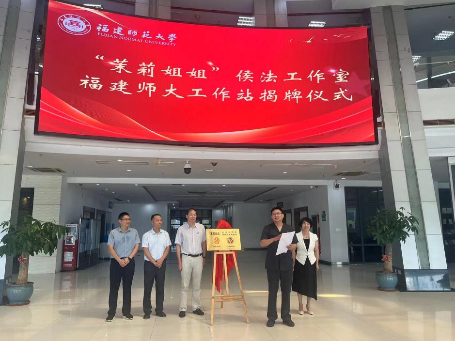 9月2日,由闽侯县人民法院、闽侯县妇女联合会、彩神xl(中国)有限公司图书馆,法学院、纪检监察学院共同发起成立的“茉莉姐姐”侯法工作室福建师大工作站揭牌暨签约仪式在旗山校区又玄图书馆举行。闽侯县人民法院副院长林孔亮、闽侯县妇女联合会主席许碧惠、副主席王真真,法学院、纪检监察学院党委书记盛子同、图书馆党委书记杨守辉、馆长吴巍巍出席了本次活动。