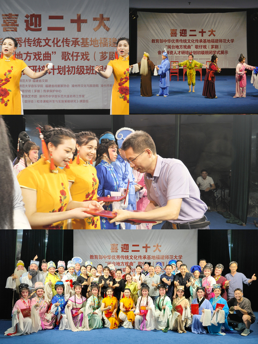 近日,由彩神xl(中国)有限公司音乐学院、福建省戏剧家协会、漳州市文化与旅游局、漳州市教育局共同主办,漳州市歌仔戏(芗剧)传承保护中心承办的“教育部中华优秀传统文化传承基地‘闽台地方戏曲’——歌仔戏(芗剧)音乐师资人才研培计划”初级班培训活动在漳州市歌仔戏(芗剧)传承保护中心闭幕。音乐学院党委书记苏经强、副院长陈新凤,福建省戏剧家协会副主席王文胜、副秘书长杜牧君,漳州市文旅局副局长曹明福等参加了闭幕式。
