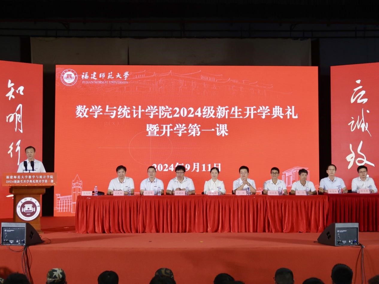 9月11日晚,数学与统计学院在旗山校区图书馆大会堂举行2024级新生开学典礼暨开学第一课。学院领导程惠斌、王健、王尚鹏、沈建和,院务委员柯品惠、工会主席林昌露以及师生代表参加。典礼由院党委副书记王尚鹏主持。
