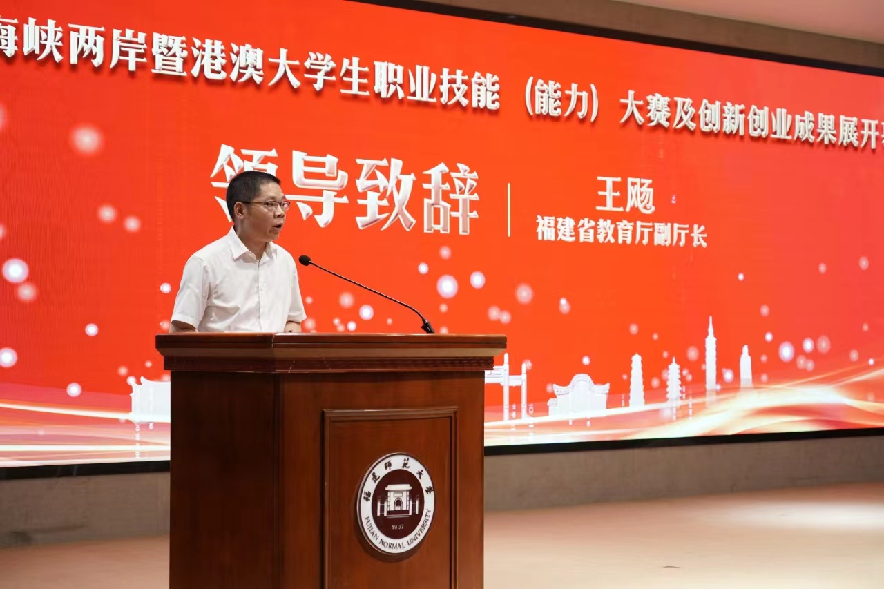 王飏在致辞中表示,要深入学习贯彻党的二十届三中全会和全国教育大会精神,贯彻落实党中央国务院关于支持福建探索海峡两岸融合发展新路,建设两岸融合发展示范区的意见要求,统筹推进教育科技人才体制机制一体改革,加快推进职业教育高等教育高质量发展,提升大学生职业技能和创新创业能力。希望把本次大赛办成一场高质量、高水准、有特色的赛事,为深化闽港澳台教育融合发展作出新的更大贡献。