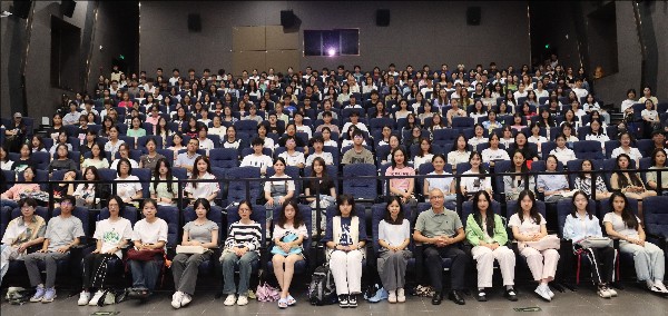 9月26日,传播学院党委书记郑文灿在星雨剧场为新生开展以“拥抱智能传播时代,做挺膺担当奋斗者”为主题的讲座,2024级全体本科生参加。