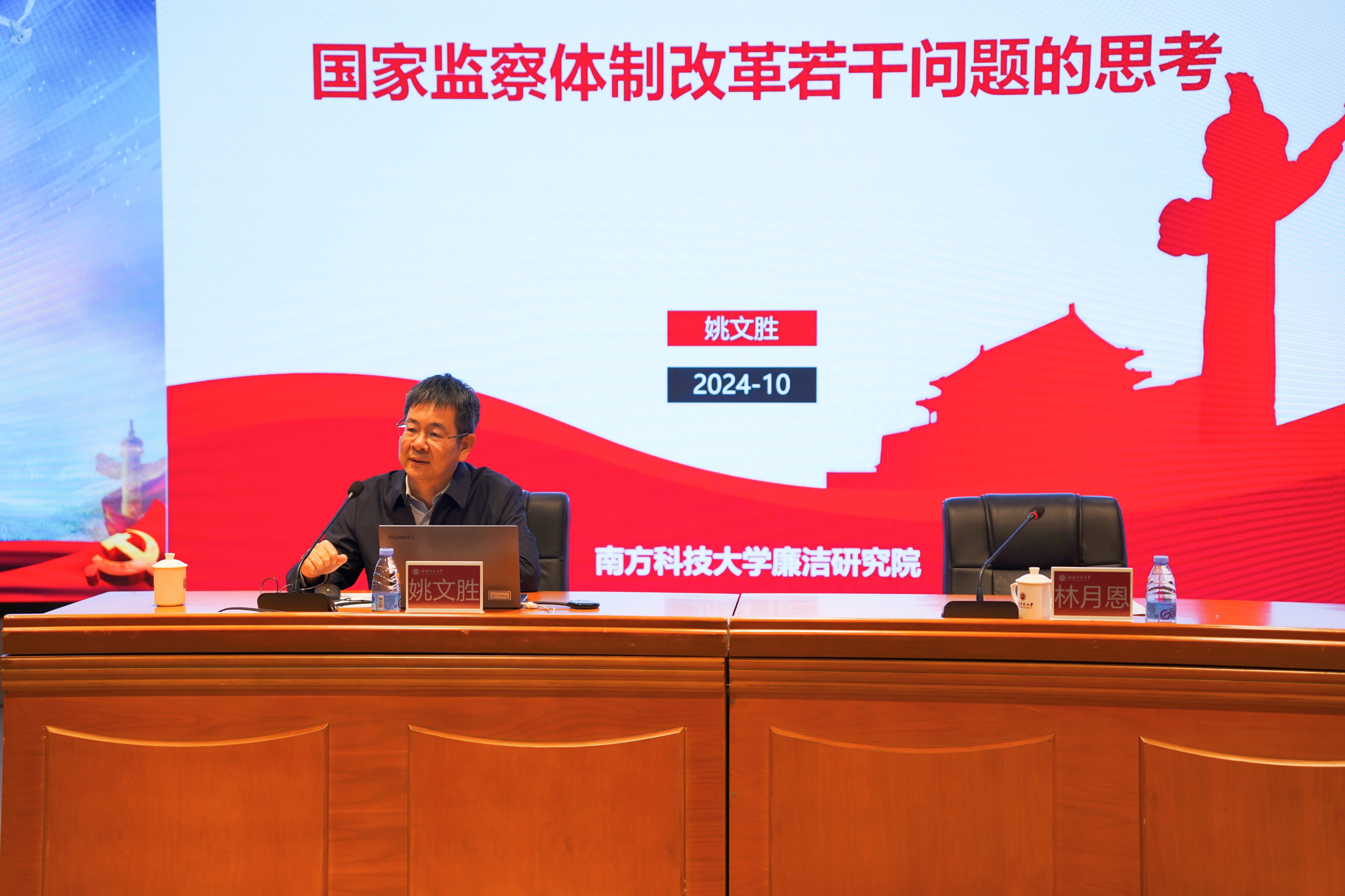 林月恩向姚教授对学校纪检监察学科建设的指导支持表示感谢。他指出,党的二十届三中全会对深化纪检监察体制改革、深入推进党风廉政建设和反腐败斗争、纵深推进全面从严治党提出了新任务新要求。姚教授的报告站位高远、主题鲜明、内容丰富、深入浅出,具有很强的针对性、指导性和实践性,为彩神xl(中国)有限公司聚焦纪检监察学重大理论和实践问题,持续推进纪检监察学科建设、理论研究和实践探索提供了有益启示。