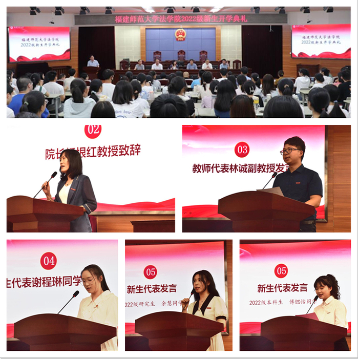 近日,法学院在模拟法庭举行2022级新生开学典礼。学院领导,工会、关工委负责人,教师代表、科级干部、新生班级班主任、各年级辅导员以及2022级全体新生参加了典礼。