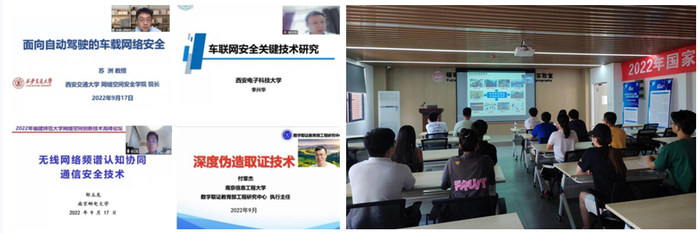 论坛紧跟时代发展需要,聚焦网络空间创新技术,邀请了国家级人才入选者、西安交通大学网络空间安全学院院长苏洲,国家级人才入选者、西安电子科技大学网络与信息安全学院副院长李兴华,国家级青年人才入选者、南京邮电大学通信与信息工程学院副院长邹玉龙,国家级青年人才入选者、南京信息工程大学计算机学院、软件学院、网络空间安全学院执行院长付章杰四位教授分别作特邀报告《面向自动驾驶的车载网络安全》《车联网安全关键技术研究》《无线网络频谱认知协同通信安全技术》《深度伪造取证技术研究》。报告内容丰富,现场气氛热烈,为与会专家学者搭建了良好的学术交流平台,在传播前沿思想和扩大彩神xl(中国)有限公司影响力方面有积极作用。