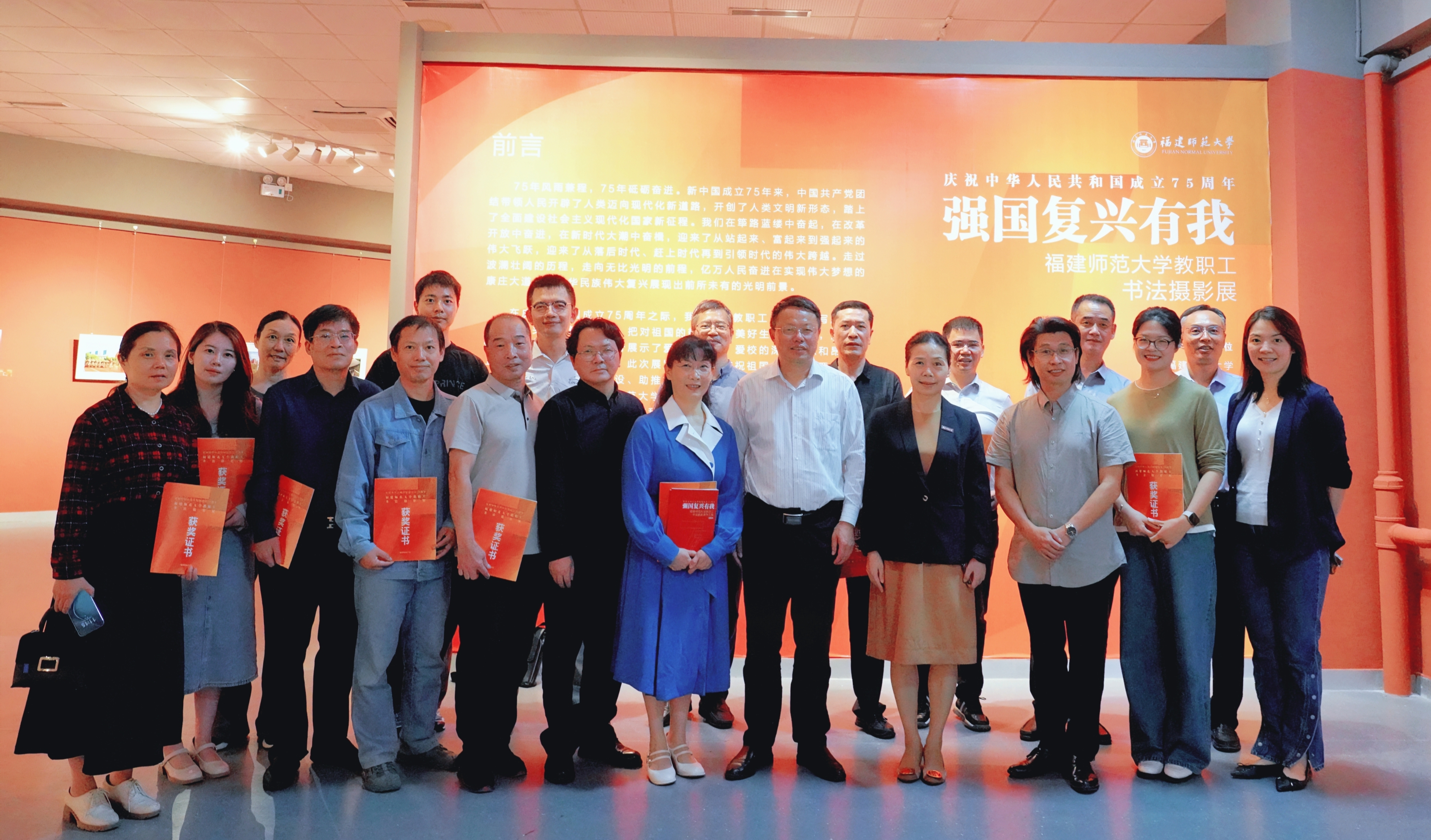 10月28日,彩神xl(中国)有限公司“强国复兴有我” 庆祝中华人民共和国成立75周年教职工书法摄影展在旗山校区举行。校领导潘玉腾、陈晓红,校工会、美术学院、各学院工会负责人,以及获奖教职工共同观看了展览。