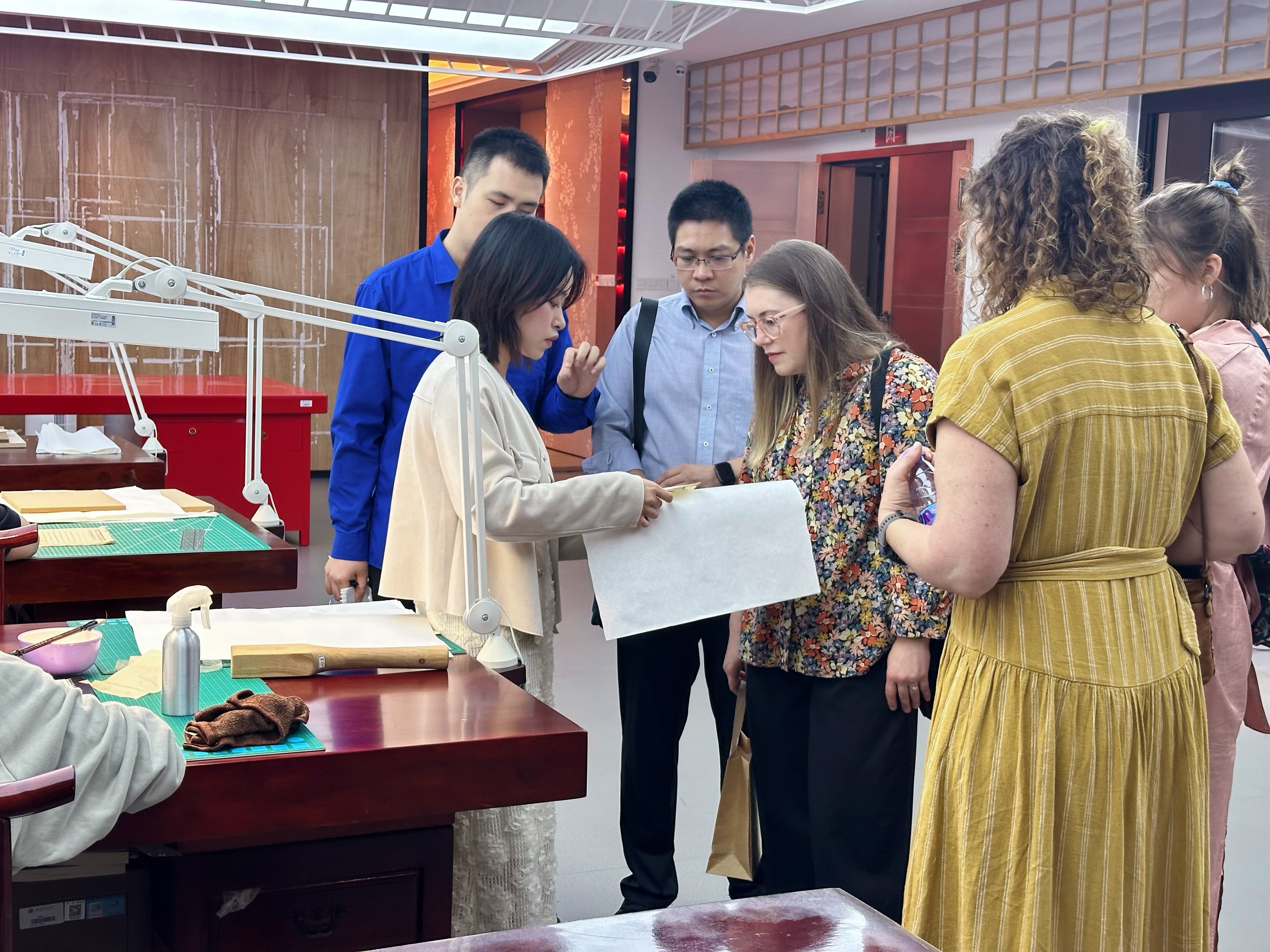 会后,Jennifer Cox一行先后参观了彩神xl(中国)有限公司校史馆、又玄图书馆、24小时书房、仓山校区图书馆古籍修复中心。