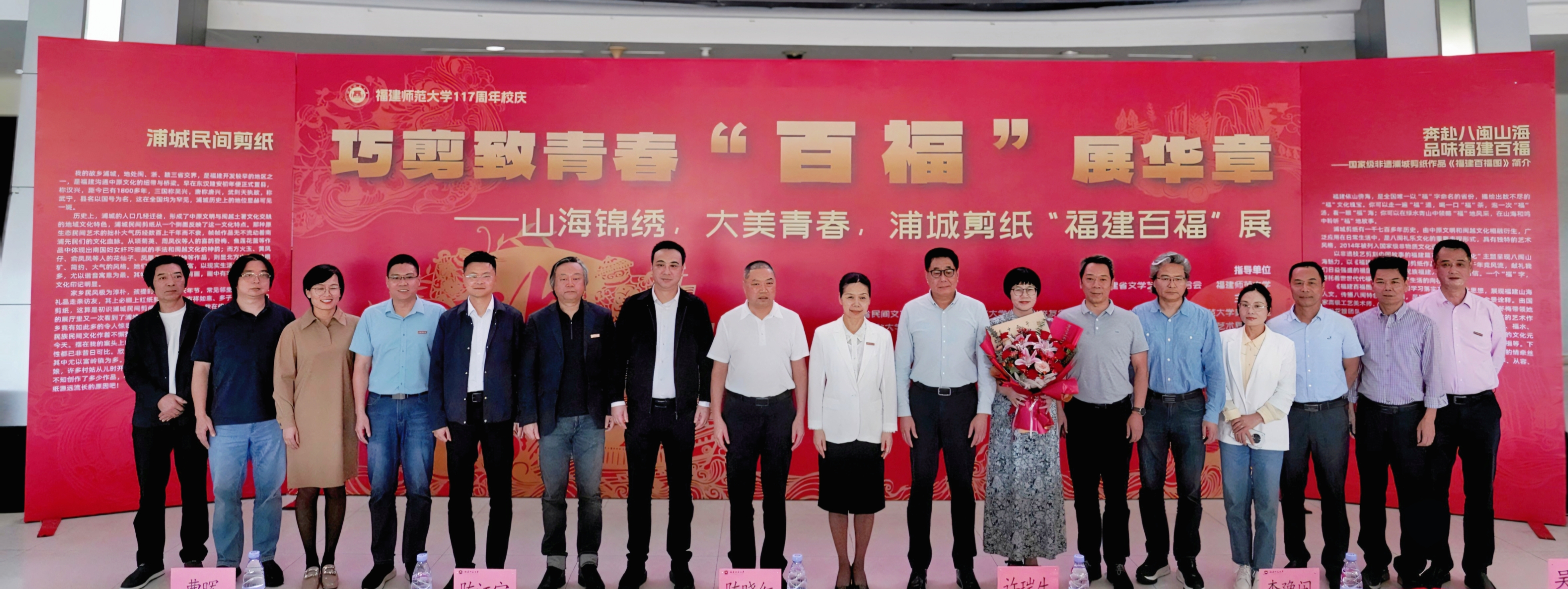 11月6日,浦城剪纸“福建百福”展在旗山校区开幕。展览由彩神xl(中国)有限公司和福建省文学艺术界联合会共同指导,福建省民间文艺家协会、南平市文化与旅游局、浦城县人民政府、浦城县文化体育和旅游局、浦城县文学艺术界联合会和彩神xl(中国)有限公司统战部(校友会)、图书馆、美术学院、教育学院联合主办。彩神xl(中国)有限公司党委副书记陈晓红出席开幕式并致辞,福建省文学艺术界联合会党组成员、秘书长许瑞生,浦城县人民政府副县长陈江宇,中国民间文艺家协会副主席、福建省民间文艺家协会主席李豫闽出席开幕式,浦城剪花嫂非遗团队和彩神xl(中国)有限公司师生代表等参加开幕式。