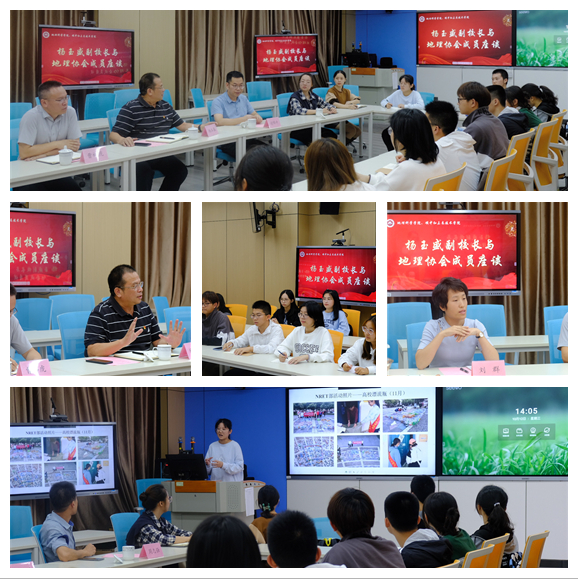 杨玉盛副校长认真听取同学们的发言,细致地解答同学们提出的问题。他充分肯定了地理协会在发挥学生社团作用、开展特色活动、服务同学等方面所做的努力和所取得的成绩,并对地理协会未来发展提出三点建议:一是地理协会要紧紧围绕立德树人根本任务,团结凝聚广大青年学生,坚持思想性、知识性、艺术性、多样性相统一的原则,积极开展方向正确、内容向上、格调高雅、形式多样的协会活动;二是地理协会要依托学院雄厚的科研平台和优秀的教师团队,辐射、带动地理学会活动的开展,强化多学科融合发展,提高协会活动的深度和广度,进一步打造有特色、高品味、接地气的活动;三是地理协会要坚持以兴趣为导向,立足创新,崇尚科学精神,从学习中、生活中、实践中发现“创新点”,将创新精神代代相传,以“星星之火可以燎原”的信心推动地理协会发展迈向新高度。