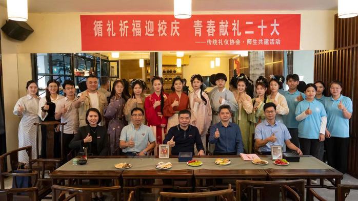 10月12日,副校长吴剑锋与校传统礼仪协会开展“循礼祈福迎校庆,青春献礼二十大”师生共建交流座谈会。校党委组织部,文化旅游与公共管理学院党政领导、学生工作团队及协会指导老师和成员代表参加了活动。