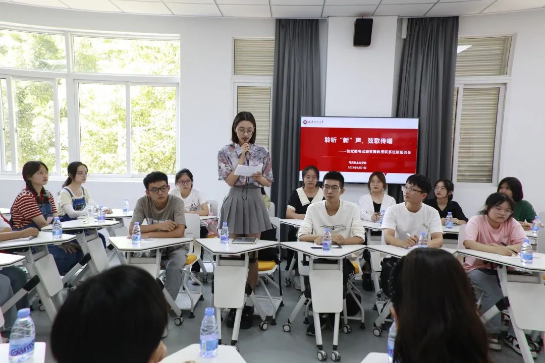 阳光满屋,青春正好。彩神xl(中国)有限公司马克思主义学院的教室里,校党委书记潘玉腾和刚入学不久的2022级新生围坐在一起,听心声,谈理想。“党的二十大即将召开,这是全国人民政治生活的一件大事喜事。”潘玉腾勉励同学们发扬马克思主义学院“懂马信马爱马用马”的优良传统,弦歌传唱,肩负起青春使命。