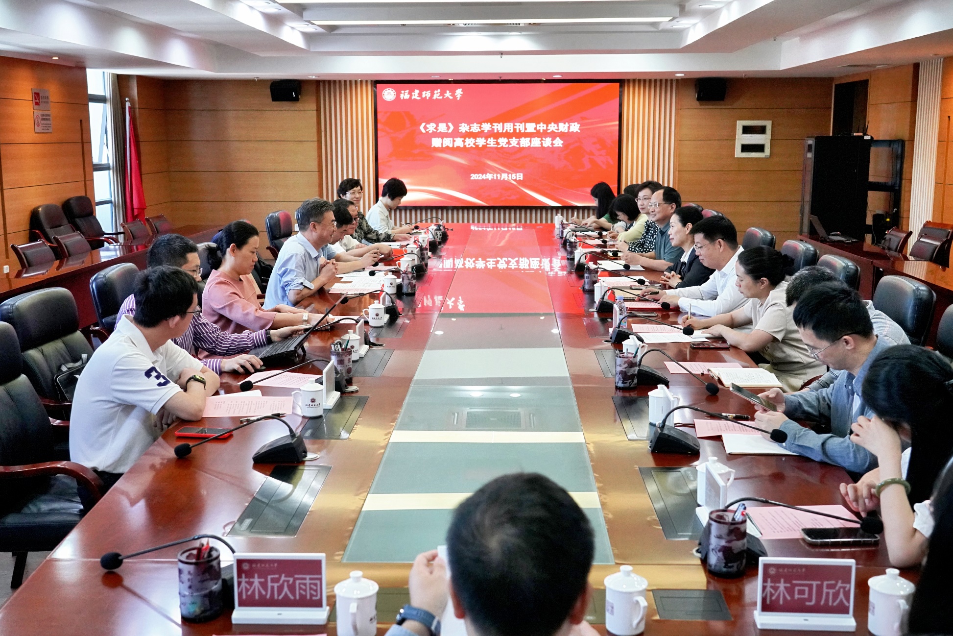 会议于11月15日在旗山校区召开。求是杂志社宣传联络部主任杨煌,宣传联络部宣传一处处长易赛键、宣传一处副处长李蕾,省委宣传部新闻处、省教育厅思政处、省邮政报刊局、福州大学宣传部及彩神xl(中国)有限公司宣传部、组织部、马克思主义学院等单位有关负责人,福州大学和彩神xl(中国)有限公司师生代表等参加了座谈会。会议由校党委副书记陈晓红主持。