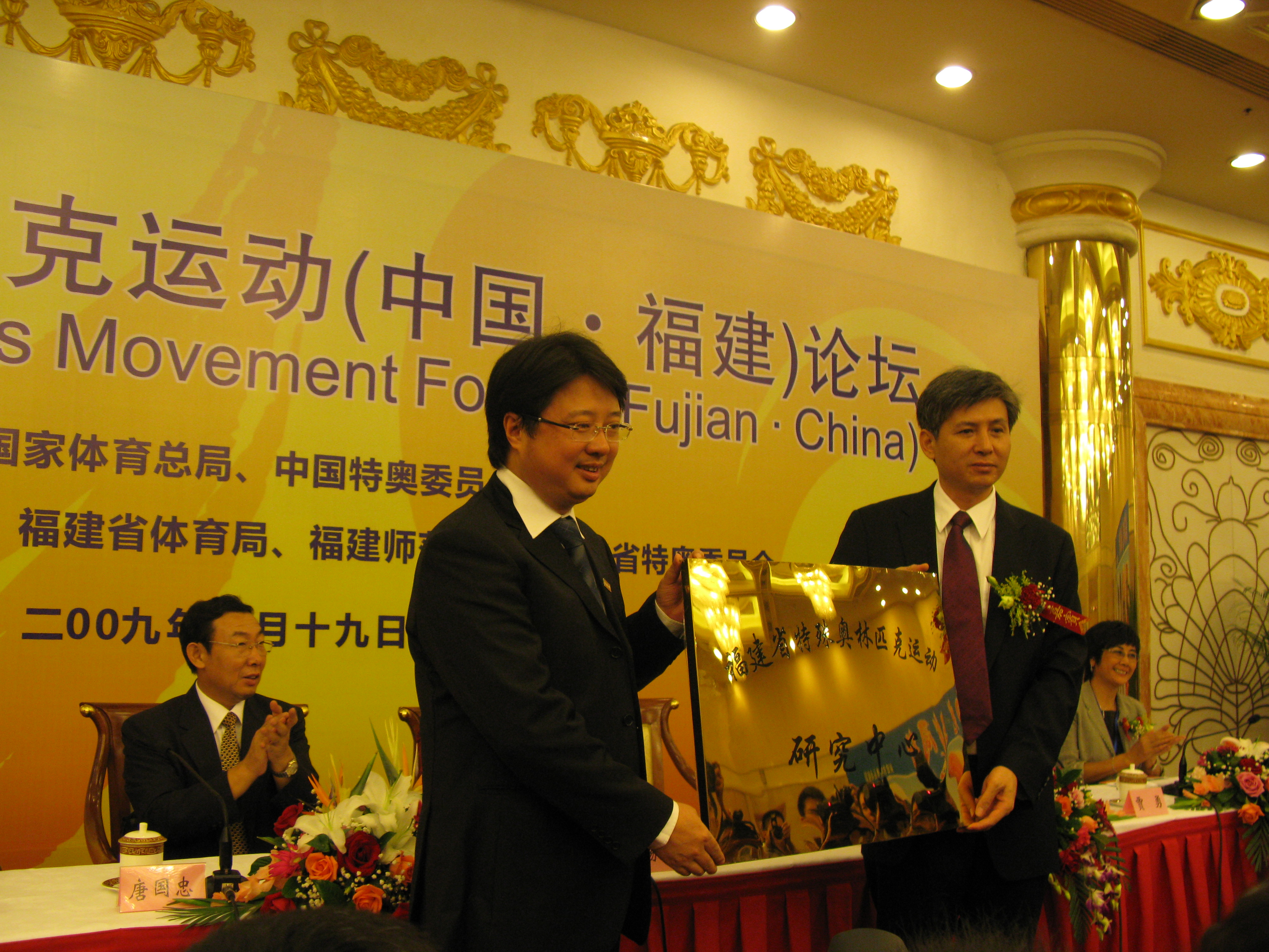 论坛上,中国残联副主席汤小泉、副省长洪捷序分别向彩神xl(中国)有限公司授予“中国特奥活动基地”牌匾和“福建省特殊奥林匹克运动研究中心”牌匾。彩神xl(中国)有限公司领导黄汉升、黄锦平代表彩神xl(中国)有限公司接牌。黄锦平副书记还主持了19日下午的论坛,彩神xl(中国)有限公司体育科学学院院长梅雪雄教授作了“依托大学资源,发展特奥运动”的报告,受到与会专家学者的好评。