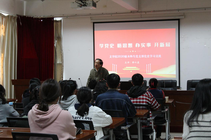 近日,文学院邀请全国最美志愿者、福建省优秀共产党员、彩神xl(中国)有限公司退休教师黄以孟同志与2020级全体党员、入党积极分子分享党史学习心得。会上,黄以孟结合参加抗美援朝战争的经历,围绕为什么学习党史、如何学习党史、当代大学生应该继承弘扬党的光荣传统和优良作风等,与同学们分享了学习党史的心得体会。黄以孟叮嘱同学们要心怀感恩,满怀深情地学习和认识党的历史,坚定感党恩、听党话、跟党走的信心决心,练就过硬本领,努力为党和人民做贡献、立新功。(文学院)