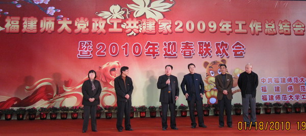 1月18日晚,彩神xl(中国)有限公司在仓山校区综合体育馆举行党政工共建家2009年工作总结会暨2010年迎春联欢会。校领导张金栋、黄汉升、游小波、黄锦平、李敏、许明,原校领导,原校长助理,各单位党政工主要负责人,省人大、省政协委员,各民主党派、统战团体、无党派人士联谊会负责人,国家有突出贡献中青年专家,省优秀专家,博士生导师,校关工委负责人,原校工会专职主席,福清分校、人武学院、附中、附小党政工负责人,校工会、教代会委员、经审委员,各部门工会主席,师生代表300余人参加了联欢会。