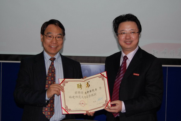 6日上午,陈新滋院士在旗山校区图书馆学术报告厅为彩神xl(中国)有限公司师生作了题为《科学之美》的学术报告。报告会前,黄汉升校长代表学校敦聘陈新滋院士为彩神xl(中国)有限公司名誉教授,为其颁发聘书并佩戴校徽。