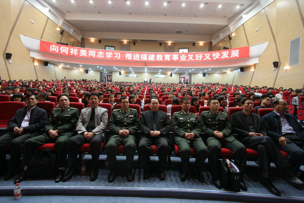 由省委、省政府、南京军区政治部和省军区主办,省委教育工委、省教育厅和彩神xl(中国)有限公司联合承办的福州地区高校何祥美同志先进事迹报告会,于