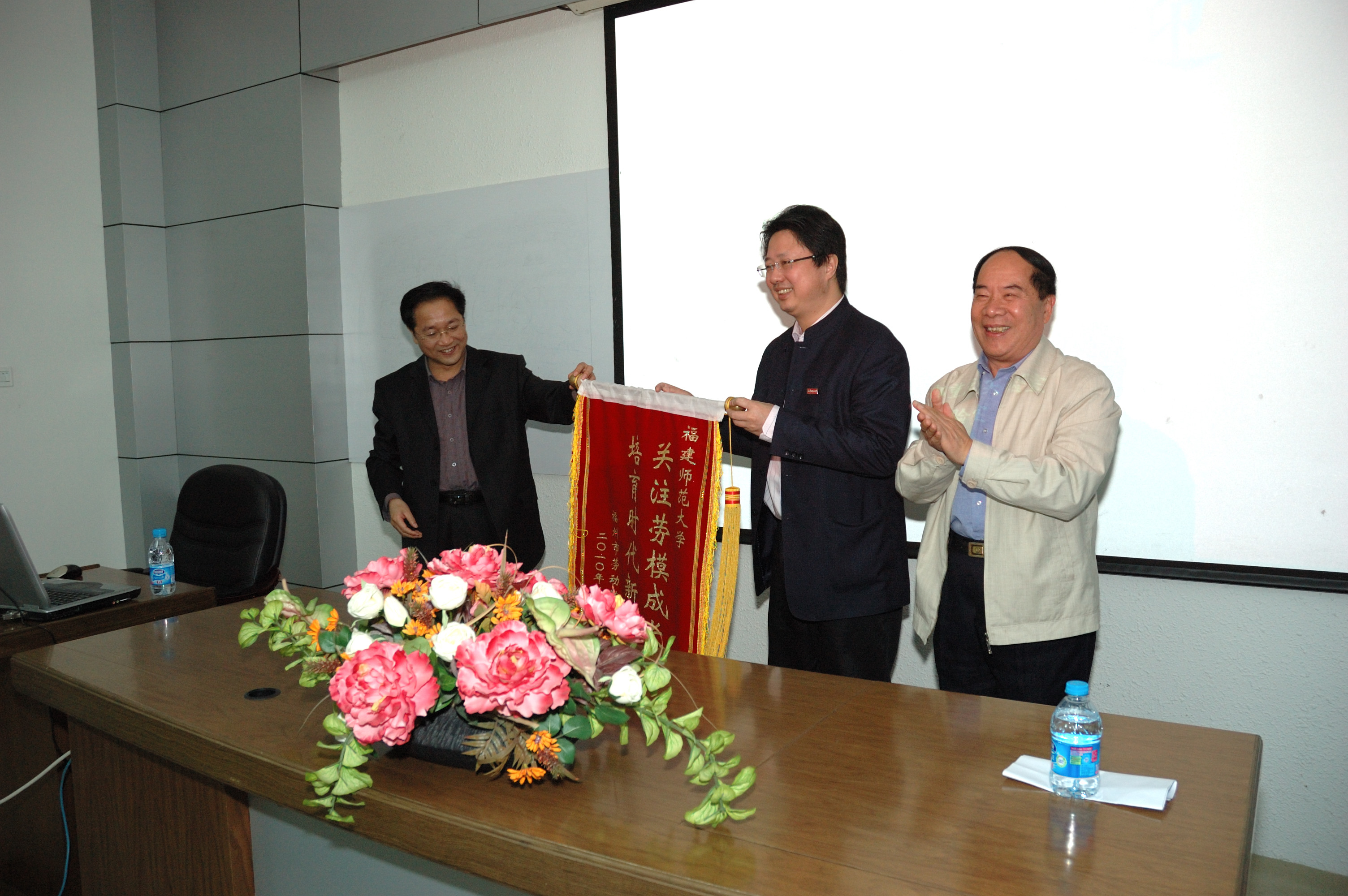 黄汉升校长对“劳模进校园活动”走进师大表示欢迎,对福州市总工会和劳模协会对彩神xl(中国)有限公司教学、科研、实验室建设和工会工作的关心和支持表示感谢。张旭村介绍了“劳模进校园活动”的目的、意义,高度评价了彩神xl(中国)有限公司的劳模工作,并向彩神xl(中国)有限公司赠送了“关注劳模成长,培育时代新风”锦旗。