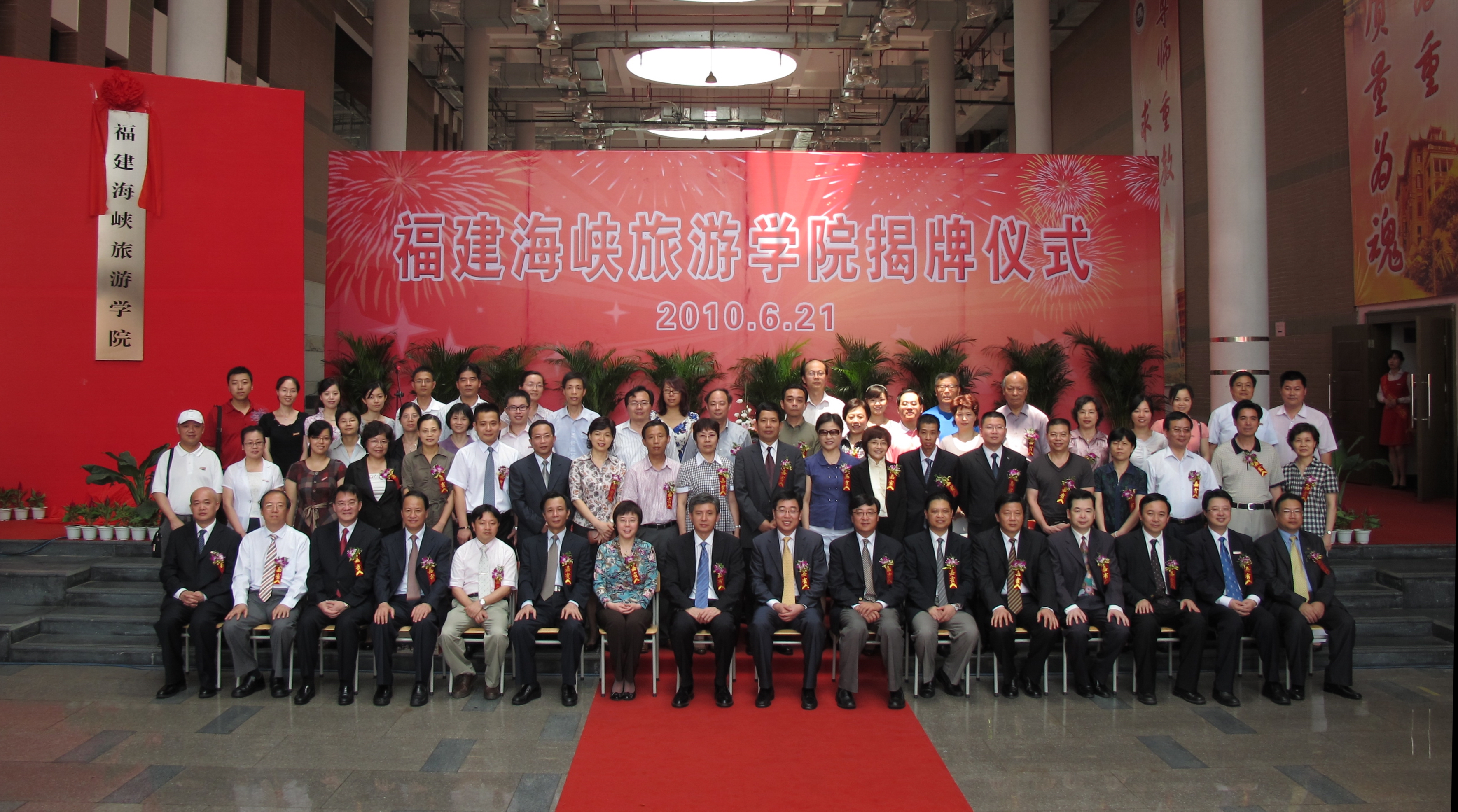 揭牌仪式上,福建海峡旅游学院分别与福州(平潭)综合试验区、福建中旅集团、福建省旅游信息中心、福州西湖大酒店、福建省财富酒店投资股份有限公司签订了共建专业实训、实习基地协议。