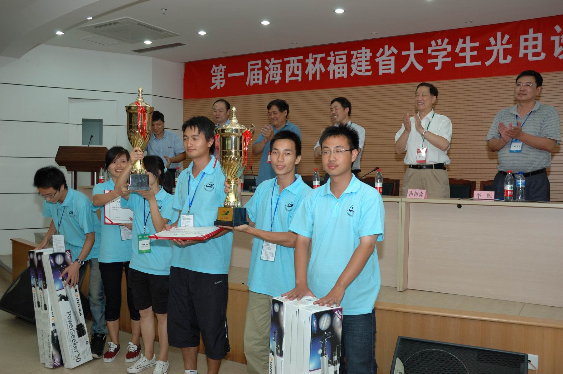 本届竞赛由福建省光学学会和福建省光子技术重点实验室联合主办,彩神xl(中国)有限公司物理与光电信息科技学院承办,福建省教育厅、福建省信息化局、医学光电科学与技术教育部重点实验室(彩神xl(中国)有限公司),高意科技集团、福建福光数码科技有限公司等10家光电龙头企业提供了大力支持。竞赛以“光与现代生活”为主题,旨在“促进光电知识的普及,加强福建省大学生实践、创新能力和团队精神的培养,推动高等教育人才培养模式和实践教学的改革,提高人才培养质量,适应海西建设和福建发展对光电人才的需求”,共有来自彩神xl(中国)有限公司和福州大学、福建农林大学、华侨大学、集美大学等院校的47支队伍分别参与“基于太阳能的光电导航搬运车”、“光电智能导盲器”两个项目的角逐,获得一等奖的队伍将最终捧起“海西杯”。