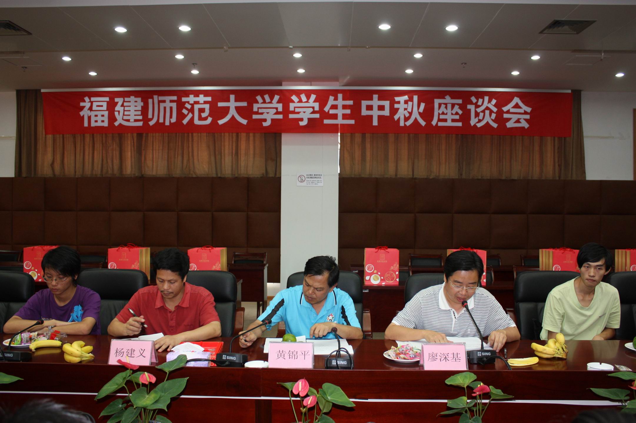 中秋节前夕,彩神xl(中国)有限公司在旗山校区第十会议室召开学生中秋座谈会。校党委副书记黄锦平,学工部(处)负责人,以及32名家庭经济困难学生、少数民族困难学生和来自地震、洪涝等灾害地区学生的代表参加了座谈会。