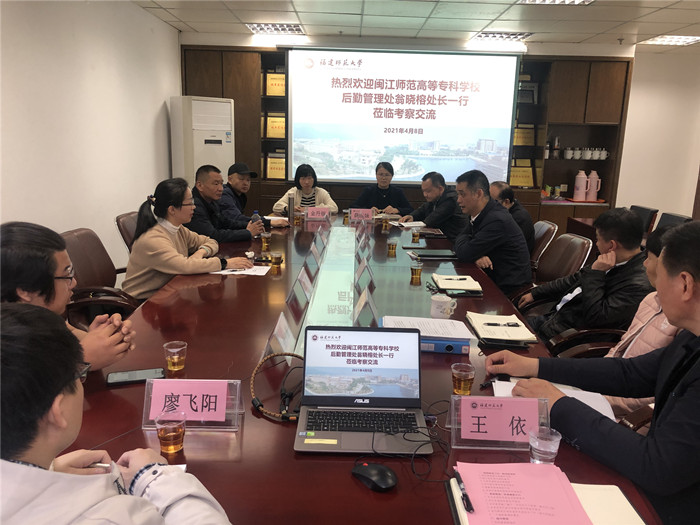 近日,闽江师范专科高等学校后勤管理处处长翁晓榕一行来彩神xl(中国)有限公司后勤管理处、后勤服务集团调研交流。后勤管理处副处长兼后勤服务集团副总经理(主持工作)张栋、后勤服务集团副总经理黄滨,以及相关科室中心负责人参加了座谈会。