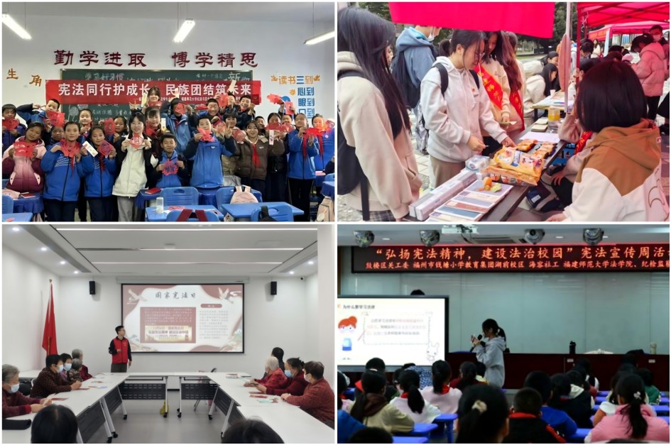 12月1日—7日是第七个“宪法宣传周”,法学院以“大力弘扬宪法精神,推动进一步全面深化改革”为主题,携手福州铁路运输检察院、闽侯县人民法院的10多名法官、检察官,深入大中小学和社区,采取“普法+支教、+法律、+党日活动、+知识竞赛、+读书会”等普法形式,开展20余场主题活动,在创新普法形式中推动宪法精神走深走实,在提高宣传实效中掀起宪法学习热潮。