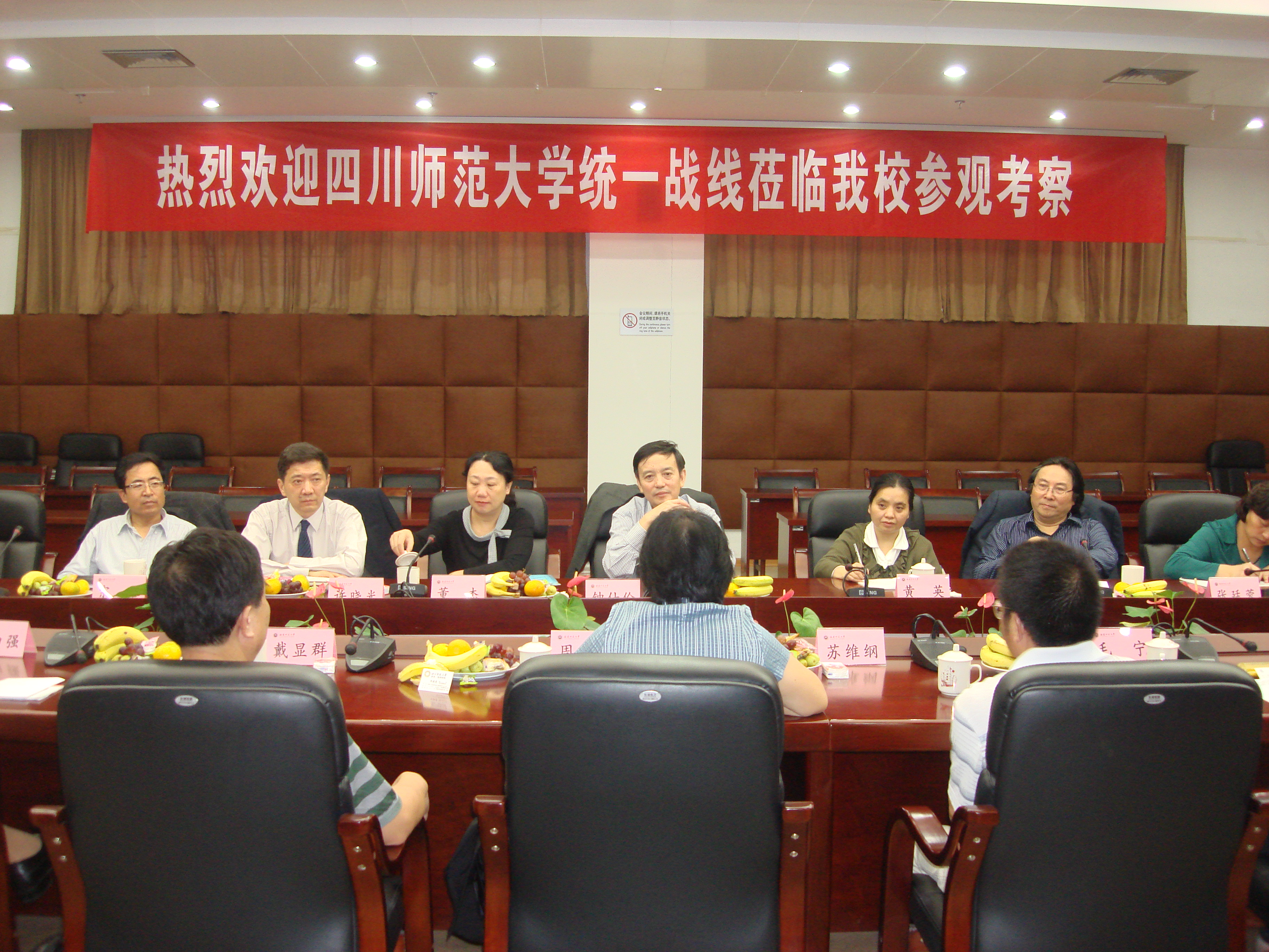 10月17日至18日,四川师范大学党委副书记钟仕伦率校统一战线各组织负责人一行10人来彩神xl(中国)有限公司考察交流。校领导罗萤、黄汉升、黄锦平、李敏先后会见了钟仕伦一行,党委统战部,校统一战线有关组织负责人参加了会见。