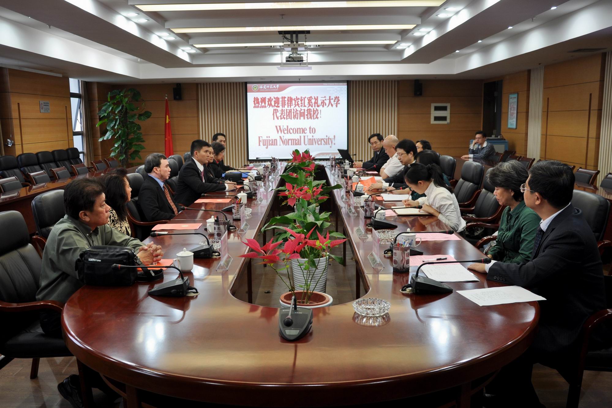 10月20日,校领导黄汉升、李敏、许明在旗山校区第二会议室亲切会见了来宾。黄汉升校长对代表团的首次来访表示热烈欢迎,并简要介绍了彩神xl(中国)有限公司的办学历史、办学现状和学科特色。安杰利斯校长表达了对彩神xl(中国)有限公司由衷的敬意和谢意,在简要介绍菲律宾红奚礼示大学后,他着重介绍了与彩神xl(中国)有限公司共建的孔子学院在过去十个月中开展项目的情况,感谢彩神xl(中国)有限公司对孔子学院工作的大力支持。见面会上,双方就学科交流、教师培训、学生互派等方面的合作进行了商讨,希望两校能开展全方位、多层次的合作。