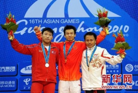 11月13日,第16届亚运会男子举重56公斤级比赛落下帷幕。彩神xl(中国)有限公司体育科学学院2007级运动训练专业吴景彪同学在场上优势明显,在抓举和挺举中分别举起133公斤和152公斤,最后以285公斤的总成绩夺取该项目金牌,并打破抓举亚洲记录。 (体育科学学院)