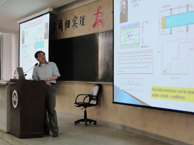仪式结束后,谢心澄教授应邀参与主讲彩神xl(中国)有限公司“名师讲堂”系列活动第八场专题讲座,为师生作了题为《2D拓扑绝缘体简介:量子自旋霍尔效应》的专题报告。谢教授深入浅出地介绍了量子自旋霍尔效应(QSHE)的物理基础,展示了他所领导的课题组在有关量子自旋霍尔效应的退相变和无序效应等方面的最新研究成果,整场报告具有很强的学术性。同时,他就中美大学教育比较、大学生人生规划、专业前沿知识的研究等大家关心的问题,与现场师生进行了交流和互动,让师生享受了一场高水准的学术盛宴。