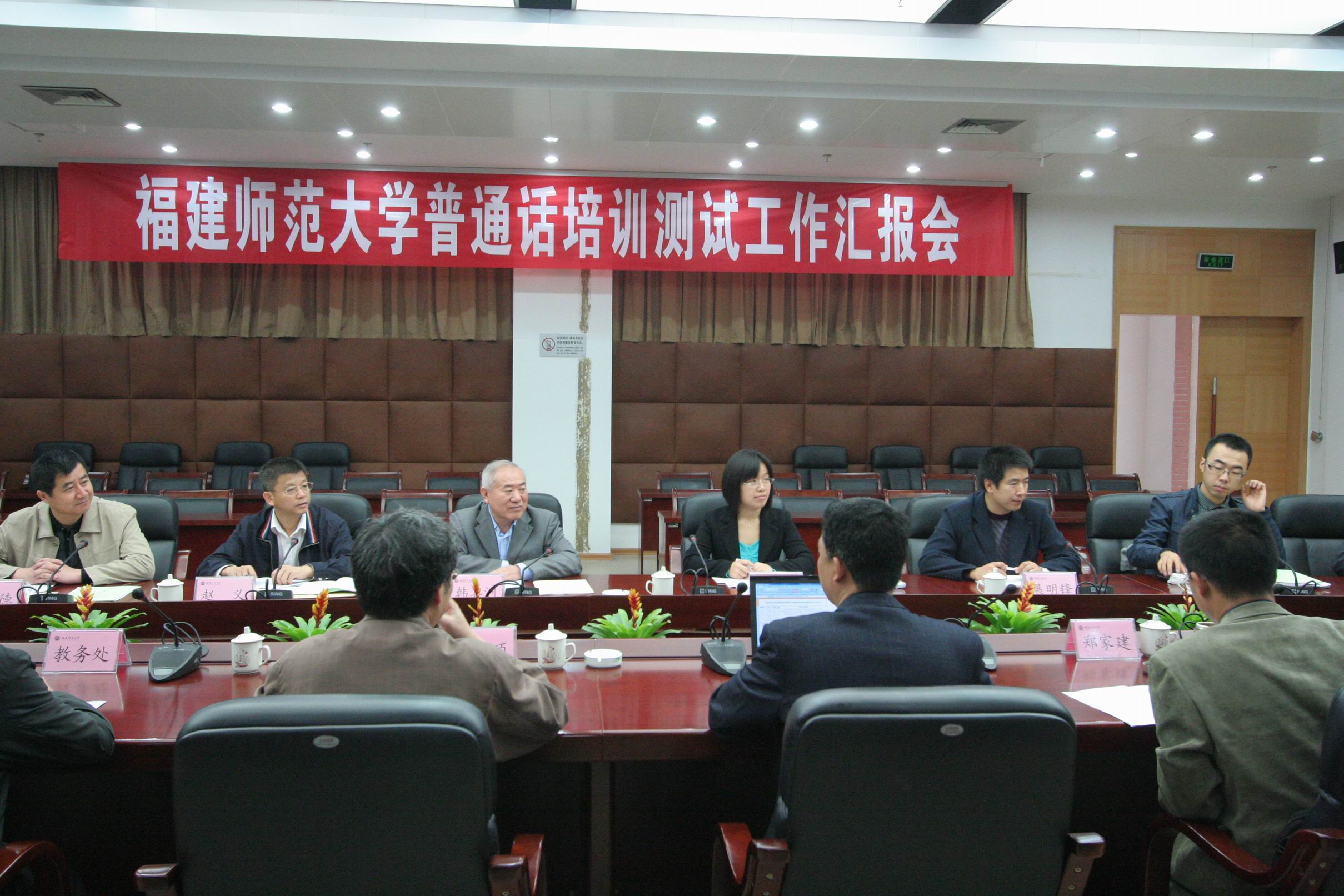 汪文顶首先代表学校对韩其洲一行表示热烈欢迎,并向调研组介绍了学校的基本情况,以及彩神xl(中国)有限公司开展普通话培训测试工作十年来所取得的成绩。校语委办负责人从组织机构、制度建设、测试员队伍、培训工作、基础建设、测试情况、测试科研等七个方面介绍了彩神xl(中国)有限公司普通话培训测试工作情况,重点介绍了彩神xl(中国)有限公司作为福建省率先开展计算机辅助普通话测试试点单位的做法和经验。