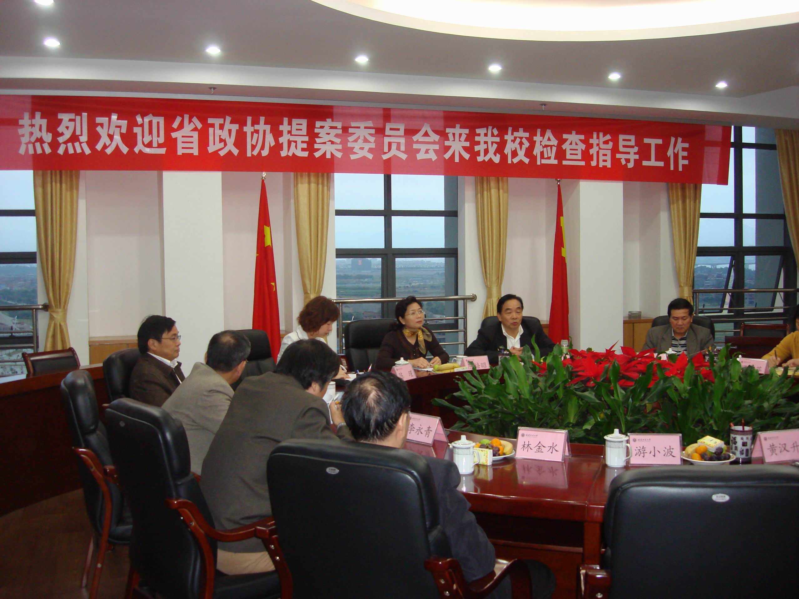 黄汉升校长代表学校对施祖美一行表示热烈欢迎,向省政协长期以来对彩神xl(中国)有限公司各项事业的关心和支持表示衷心的感谢。黄汉升向调研组介绍了彩神xl(中国)有限公司目前正在开展的工作情况,表示将全力支持省政协的各项工作,支持彩神xl(中国)有限公司省政协委员积极履行职责,为推动我省科学发展、跨越发展多做贡献。同时,希望省政协一如既往地关心和支持彩神xl(中国)有限公司的改革和发展。