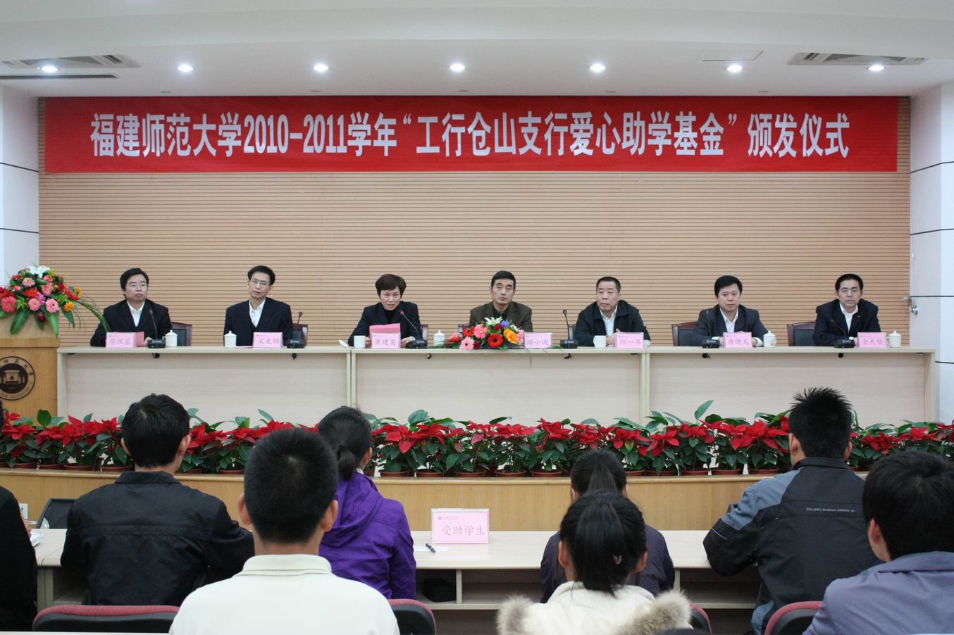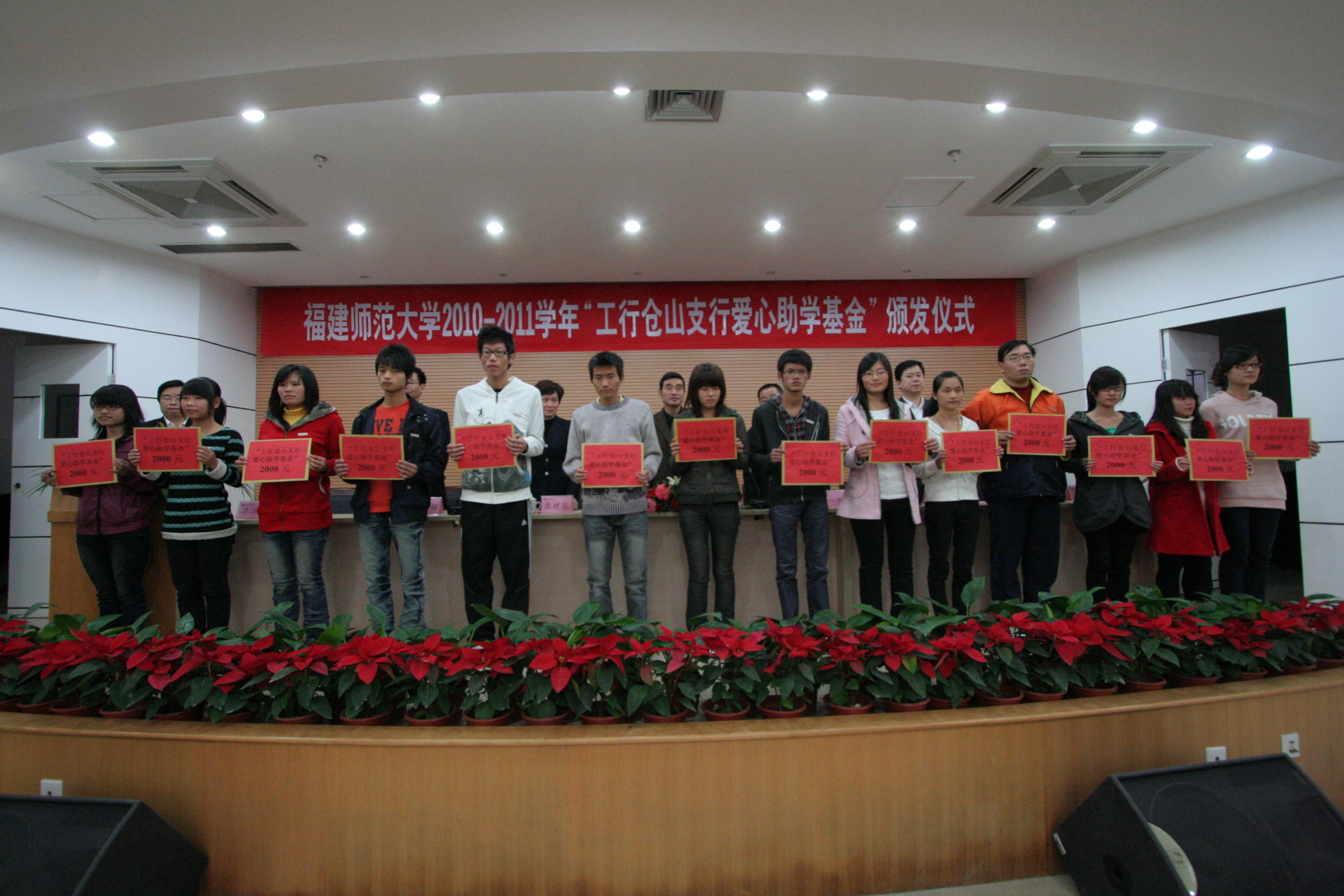“工行仓山支行爱心助学基金”由中国工商银行福州市仓山支行发动员工捐资设立,每年10万元,用于资助彩神xl(中国)有限公司品学兼优的50名家庭经济困难学生完成大学学业。此次颁发仪式是“工行仓山支行爱心助学基金”的首次颁发仪式。