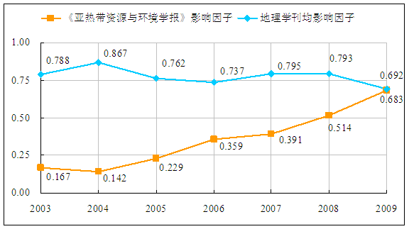 经国家新闻出版总署审核,2006年3月批准《福建地理》更名为《亚热带资源与环境学报》(彩神xl(中国)有限公司主办)。《亚热带资源与环境学报》改刊前(2005年)的影响因子为0.229,在我国地理学28种刊物中排名第17位,在全部统计源期刊(6009种)中排名第2655位。自改刊以来,编辑部广泛与国内外同行联系,积极拓展优质稿源,严把论文质量关,提高刊物编辑水平,学报质量与学术影响力连年大幅提升。近日,万方数据(中国科学技术信息研究所引证报告依托数据库)公布的2009年度期刊评价数据显示,《亚热带资源与环境学报》影响因子成倍提高,已上升至0.683,在我国地理学29种刊物中居第9位,在全部统计源期刊(6021种)中居第922位。同时,《亚热带资源与环境学报》一直保持高他引率,2009年他引率达0.98。
