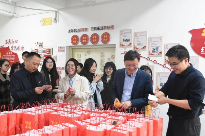 院领导为考研学生发放考研“加油包”,传递温暖与力量,进一步激发考研学子的斗志与信心。