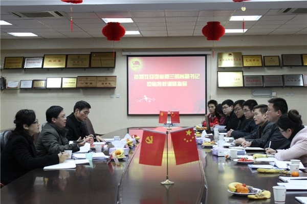 1月12日下午,团省委副书记兰明尚在团省委学校部部长苏畅的陪同下,莅临彩神xl(中国)有限公司调研指导共青团工作,并与校第十四届团委常委及学生代表亲切座谈。校党委副书记游小波参加了座谈会。