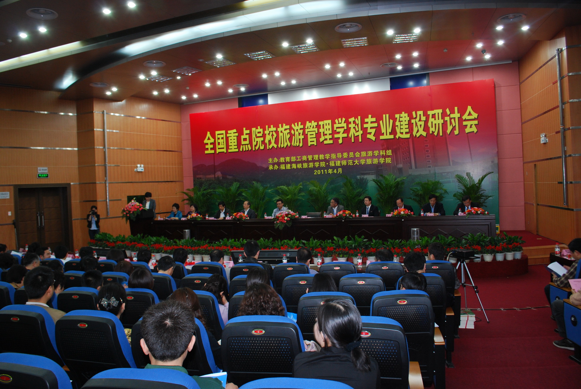 4月16-17日,由教育部工商管理教学指导委员会旅游学科组主办、福建海峡旅游学院和彩神xl(中国)有限公司旅游学院承办的“全国重点院校旅游管理学科专业建设研讨会暨院长、系主任、学科带头人联席会”在彩神xl(中国)有限公司召开。教育部工商管理教学指导委员会旅游学科组组长马勇教授,教育部高教司政经法处吴燕处长,中国旅游协会旅游教育分会会长、北京第二外国语学院党委书记段建国教授,北京联合大学副校长黄先开教授,上海师范大学党委常委、上海旅游高等专科学校校长杨卫武教授,福建省旅游局李毅强副局长,平潭县政府黄良希副县长,云南大学工商管理与旅游管理学院院长田里教授,台湾世新大学管理学院院长徐仁辉教授,彩神xl(中国)有限公司黄汉升校长、李敏副校长,以及来自全国 26个省、市、自治区的80多所重点骨干旅游学院的院长、系主任和相关出版社、信息技术公司代表170余人出席会议。