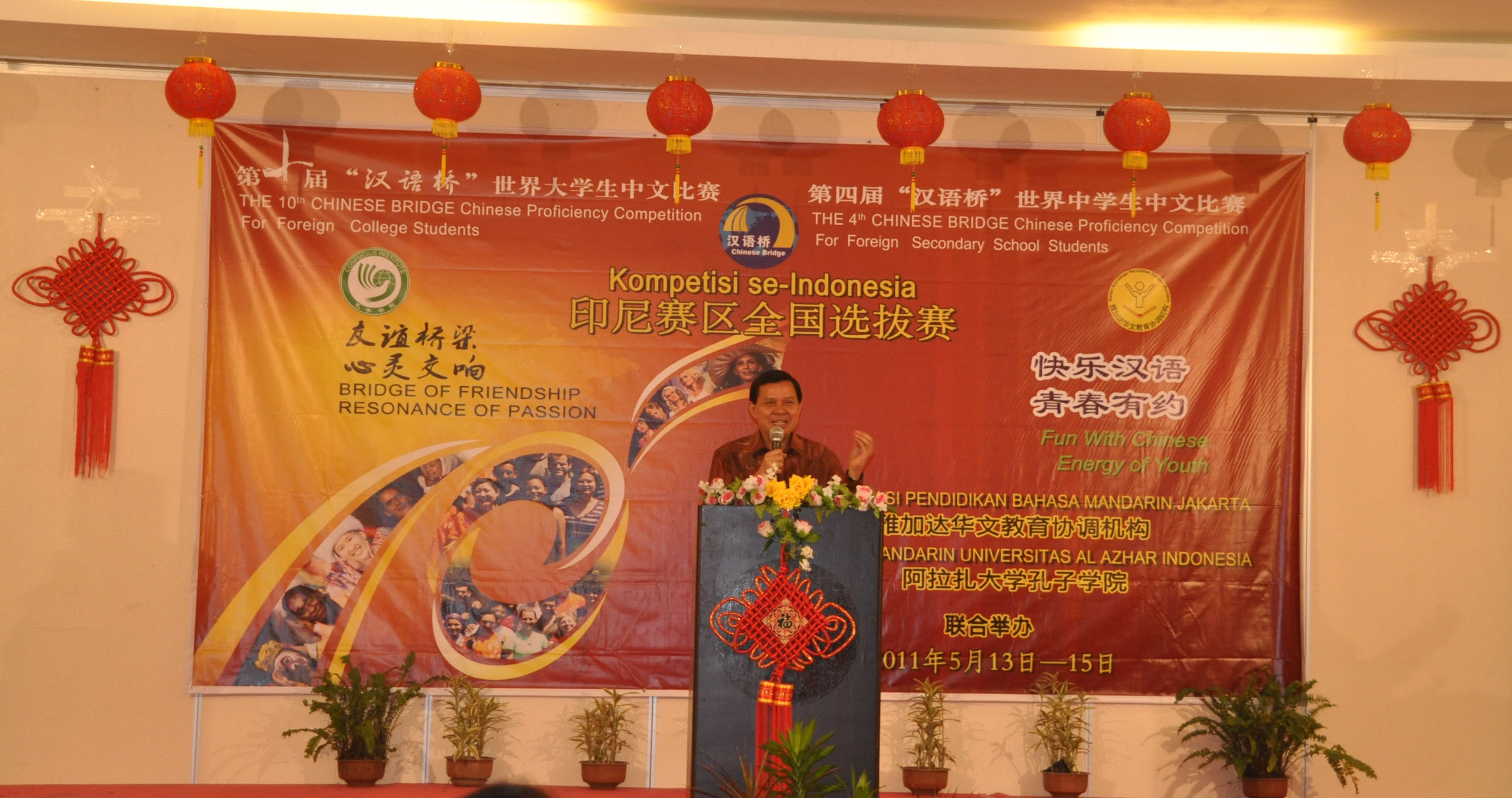 印尼国民教育部副部长法西里在“汉语桥”大学生组比赛现场致辞