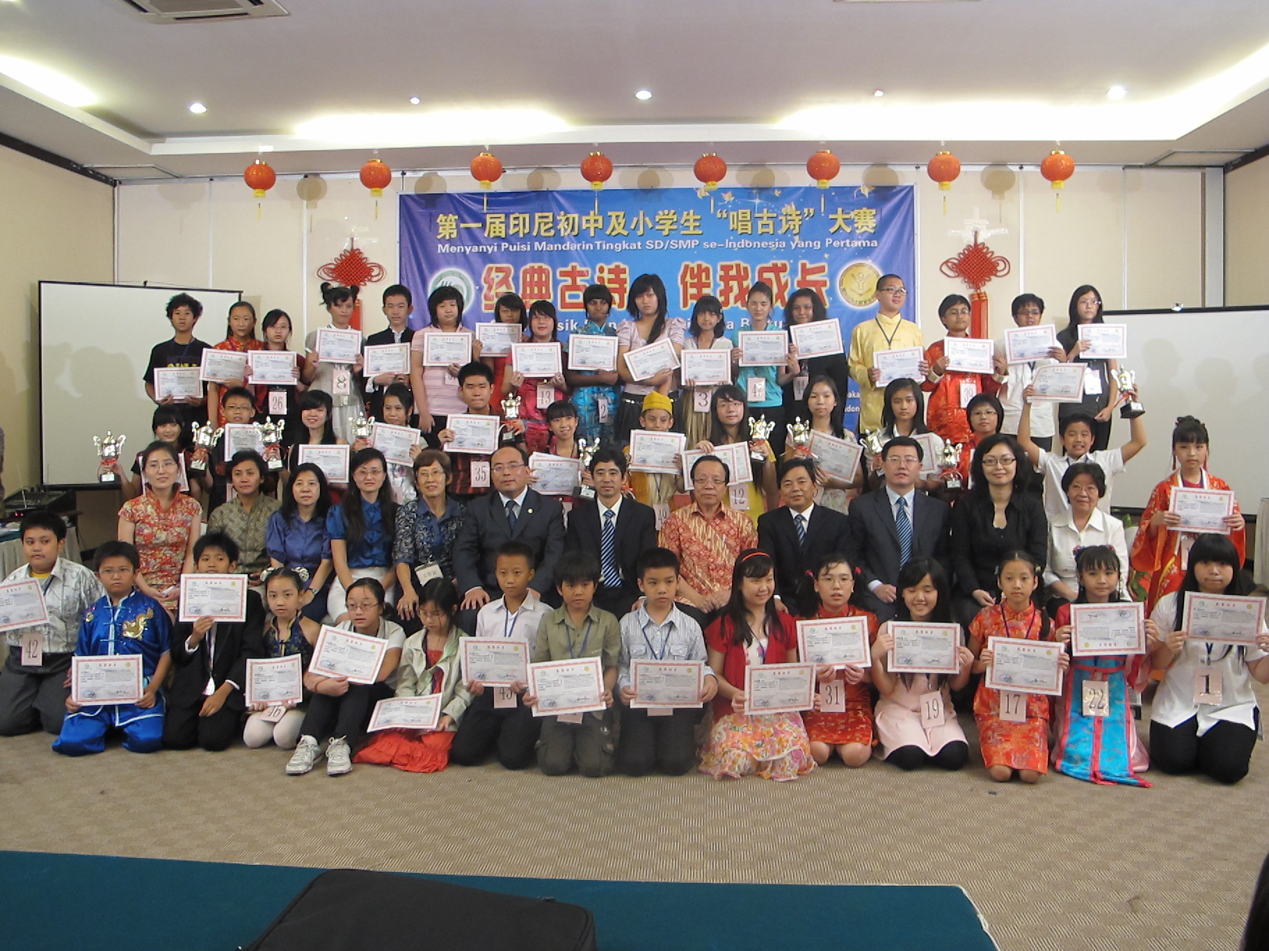 由印尼阿拉扎大学孔子学院和雅加达华文教育协调机构联合举办,印尼首家华语电视台——ESATV协办的第一届印尼初中及小学生唱古诗比赛于5月13日在雅加达举行,吸引了印尼各地51名华族及友族的小学生和初中生参赛。